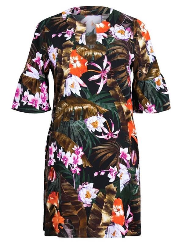 Colori brillanti con stampa fiori tropicale su sfondo verde-marrone
